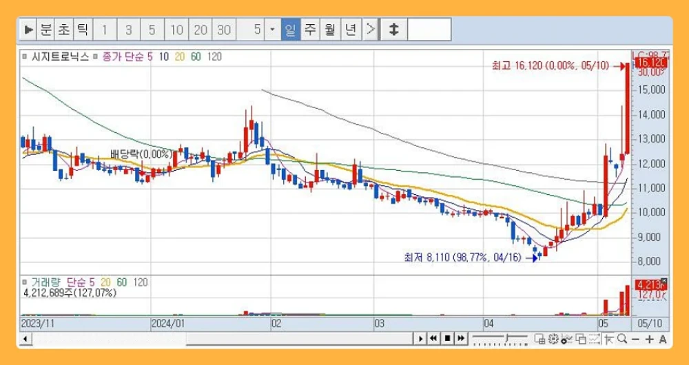 오늘은 5월 첫째주에 무섭게 주가 상승을 하고 있는 시지트로닉스 주가전망 및 상승이유에 대해서 알아보고자 합니다.