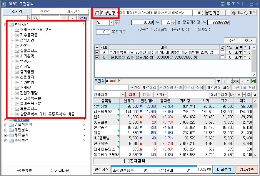 - 단기 투자자는 기술적 지표를 기반으로 한 조건검색식을 사용하여 단기 변동성이 큰 종목을 찾을 수 있습니다.