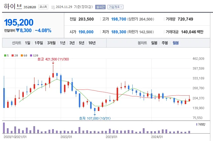 뿐만 아니라 2025년 BTS의 완전체 컴백과 팬 플랫폼 '위버스'의 수익화 가시화 등도 긍정적인 요인으로 꼽히고 있죠. 여전히 견고한 팬덤 기반과 아티스트 IP 확장성, 그리고 플랫폼 경쟁력 등은 하이브만의 차별화된 강점으로 평가받고 있습니다.